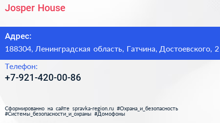 Josper House по адресу 188304, Ленинградская область, Гатчина, Достоевского, 2 в дальнейшем Организация, размещена в следующих категориях: