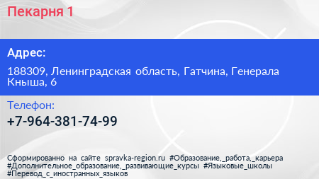 Пекарня №1 по адресу 188309, Ленинградская область, Гатчина, Генерала Кныша, 6 в дальнейшем Организация, размещена в следующих категориях: