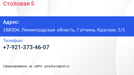 Столовая №5 по адресу 188304, Ленинградская область, Гатчина, Красная, 5/1 в дальнейшем Организация, размещена в следующих категориях: