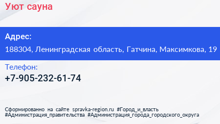 Уют, сауна по адресу 188304, Ленинградская область, Гатчина, Максимкова, 19 в дальнейшем Организация, размещена в следующих категориях: