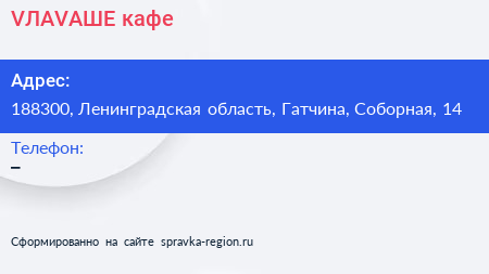 VЛАVАШЕ, кафе по адресу 188300, Ленинградская область, Гатчина, Соборная, 14 в дальнейшем Организация, размещена в следующих категориях:
