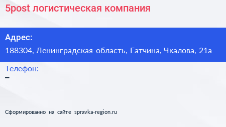 5post, логистическая компания по адресу 188304, Ленинградская область, Гатчина, Чкалова, 21а в дальнейшем Организация, размещена в следующих категориях: