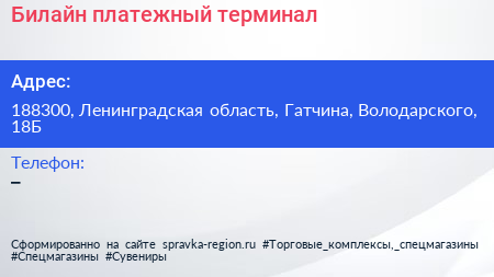 Билайн, платежный терминал по адресу 188300, Ленинградская область, Гатчина, Володарского, 18Б в дальнейшем Организация, размещена в следующих категориях: