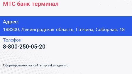МТС банк, терминал по адресу 188300, Ленинградская область, Гатчина, Соборная, 18 в дальнейшем Организация, размещена в следующих категориях: