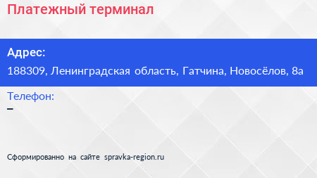 Платежный терминал по адресу 188309, Ленинградская область, Гатчина, Новосёлов, 8а в дальнейшем Организация, размещена в следующих категориях: