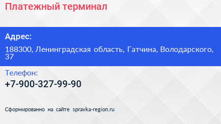 Платежный терминал по адресу 188300, Ленинградская область, Гатчина, Володарского, 37 в дальнейшем Организация, размещена в следующих категориях: