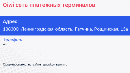 Qiwi, сеть платежных терминалов по адресу 188300, Ленинградская область, Гатчина, Рощинская, 15а в дальнейшем Организация, размещена в следующих категориях: