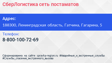 СберЛогистика, сеть постаматов по адресу 188300, Ленинградская область, Гатчина, Гагарина, 5 в дальнейшем Организация, размещена в следующих категориях: