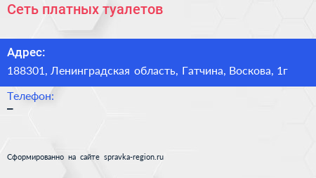 Сеть платных туалетов по адресу 188301, Ленинградская область, Гатчина, Воскова, 1г в дальнейшем Организация, размещена в следующих категориях: