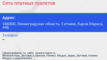 Сеть платных туалетов по адресу 188300, Ленинградская область, Гатчина, Карла Маркса, 44Б в дальнейшем Организация, размещена в следующих категориях:
