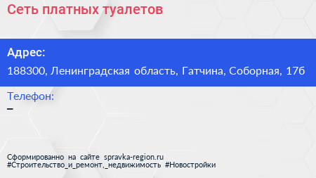 Сеть платных туалетов по адресу 188300, Ленинградская область, Гатчина, Соборная, 17б в дальнейшем Организация, размещена в следующих категориях: