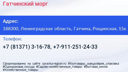 Гатчинский морг по адресу 188300, Ленинградская область, Гатчина, Рощинская, 15к в дальнейшем Организация, размещена в следующих категориях: