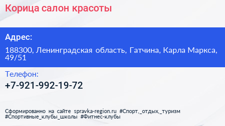 Корица, салон красоты по адресу 188300, Ленинградская область, Гатчина, Карла Маркса, 49/51 в дальнейшем Организация, размещена в следующих категориях: