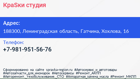 КраSки, студия по адресу 188300, Ленинградская область, Гатчина, Хохлова, 16 в дальнейшем Организация, размещена в следующих категориях: