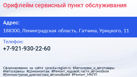 Орифлейм, сервисный пункт обслуживания по адресу 188300, Ленинградская область, Гатчина, Урицкого, 11 в дальнейшем Организация, размещена в следующих категориях: