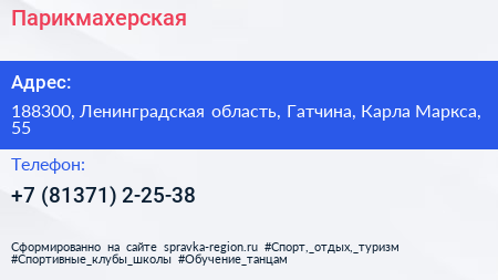 Парикмахерская по адресу 188300, Ленинградская область, Гатчина, Карла Маркса, 55 в дальнейшем Организация, размещена в следующих категориях:
