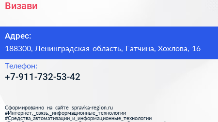 Визави по адресу 188300, Ленинградская область, Гатчина, Хохлова, 16 в дальнейшем Организация, размещена в следующих категориях: