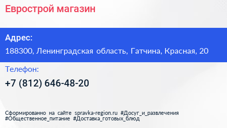 Еврострой, магазин по адресу 188300, Ленинградская область, Гатчина, Красная, 20 в дальнейшем Организация, размещена в следующих категориях:
