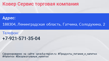 Ковер-Сервис, торговая компания по адресу 188304, Ленинградская область, Гатчина, Солодухина, 2 в дальнейшем Организация, размещена в следующих категориях: