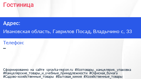 Гостиница по адресу Ивановская область, Гаврилов Посад, Владычино с, 33 в дальнейшем Организация, размещена в следующих категориях: