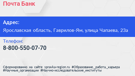 Почта Банк по адресу Ярославская область, Гаврилов-Ям, улица Чапаева, 23а в дальнейшем Организация, размещена в следующих категориях: