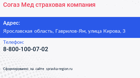 Согаз-Мед, страховая компания по адресу Ярославская область, Гаврилов-Ям, улица Кирова, 3 в дальнейшем Организация, размещена в следующих категориях: