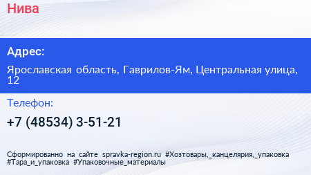 Нива по адресу Ярославская область, Гаврилов-Ям, Центральная улица, 12 в дальнейшем Организация, размещена в следующих категориях: