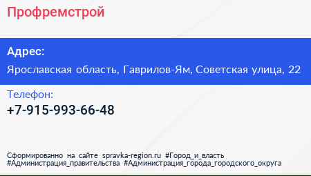 Профремстрой по адресу Ярославская область, Гаврилов-Ям, Советская улица, 22 в дальнейшем Организация, размещена в следующих категориях: