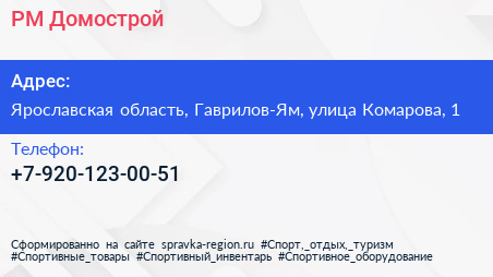 РМ Домострой по адресу Ярославская область, Гаврилов-Ям, улица Комарова, 1 в дальнейшем Организация, размещена в следующих категориях: