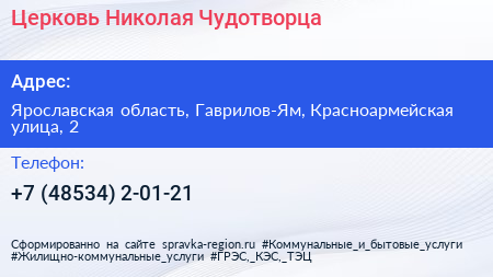 Церковь Николая Чудотворца по адресу Ярославская область, Гаврилов-Ям, Красноармейская улица, 2 в дальнейшем Организация, размещена в следующих категориях: