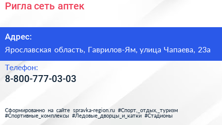 Ригла, сеть аптек по адресу Ярославская область, Гаврилов-Ям, улица Чапаева, 23а в дальнейшем Организация, размещена в следующих категориях: