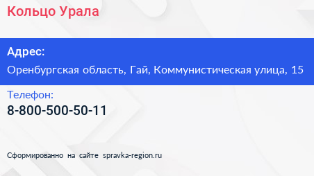 Кольцо Урала по адресу Оренбургская область, Гай, Коммунистическая улица, 15 в дальнейшем Организация, размещена в следующих категориях: