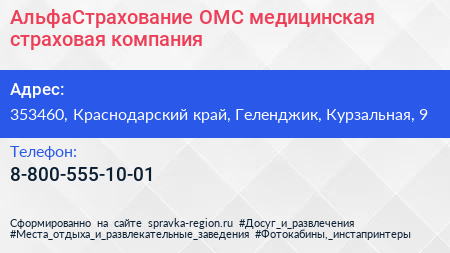 АльфаСтрахование-ОМС, медицинская страховая компания по адресу 353460, Краснодарский край, Геленджик, Курзальная, 9 в дальнейшем Организация, размещена в следующих категориях: