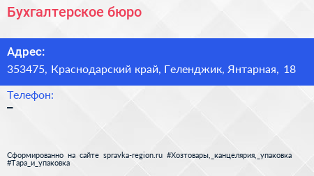 Бухгалтерское бюро по адресу 353475, Краснодарский край, Геленджик, Янтарная, 18 в дальнейшем Организация, размещена в следующих категориях: