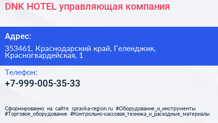 DNK-HOTEL, управляющая компания по адресу 353461, Краснодарский край, Геленджик, Красногвардейская, 1 в дальнейшем Организация, размещена в следующих категориях: