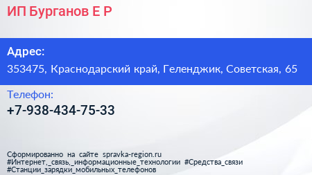 ИП Бурганов Е.Р. по адресу 353475, Краснодарский край, Геленджик, Советская, 65 в дальнейшем Организация, размещена в следующих категориях: