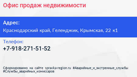 Офис продаж недвижимости по адресу Краснодарский край, Геленджик, Крымская, 22 к1 в дальнейшем Организация, размещена в следующих категориях: