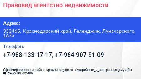 Правовед, агентство недвижимости по адресу 353465, Краснодарский край, Геленджик, Луначарского, 167а в дальнейшем Организация, размещена в следующих категориях:
