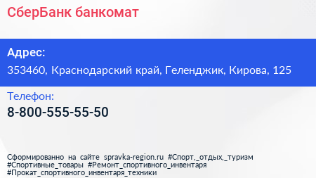 СберБанк, банкомат по адресу 353460, Краснодарский край, Геленджик, Кирова, 125 в дальнейшем Организация, размещена в следующих категориях: