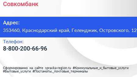 Совкомбанк по адресу 353460, Краснодарский край, Геленджик, Островского, 12 в дальнейшем Организация, размещена в следующих категориях: