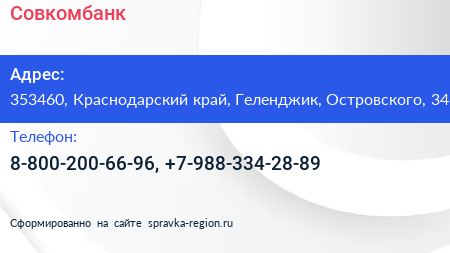 Совкомбанк по адресу 353460, Краснодарский край, Геленджик, Островского, 34 в дальнейшем Организация, размещена в следующих категориях: