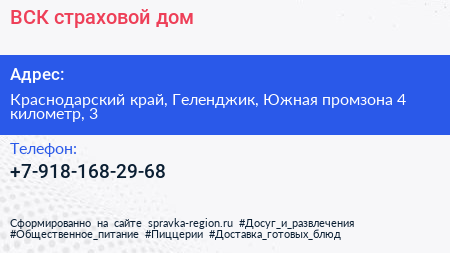 ВСК, страховой дом по адресу Краснодарский край, Геленджик, Южная промзона 4 километр, 3 в дальнейшем Организация, размещена в следующих категориях:
