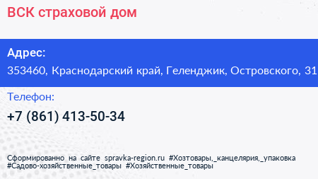 ВСК, страховой дом по адресу 353460, Краснодарский край, Геленджик, Островского, 31 в дальнейшем Организация, размещена в следующих категориях: