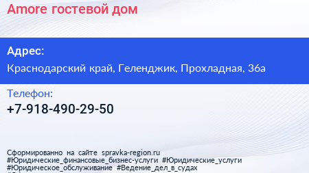 Amore, гостевой дом по адресу Краснодарский край, Геленджик, Прохладная, 36а в дальнейшем Организация, размещена в следующих категориях: