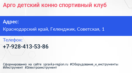Арго, детский конно-спортивный клуб по адресу Краснодарский край, Геленджик, Советская, 1 в дальнейшем Организация, размещена в следующих категориях: