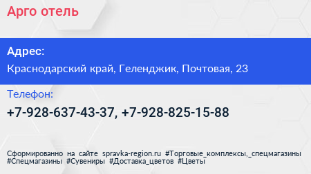 Арго, отель по адресу Краснодарский край, Геленджик, Почтовая, 23 в дальнейшем Организация, размещена в следующих категориях: