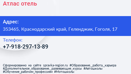 Атлас, отель по адресу 353465, Краснодарский край, Геленджик, Гоголя, 17 в дальнейшем Организация, размещена в следующих категориях: