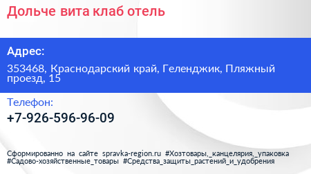 Дольче вита клаб, отель по адресу 353468, Краснодарский край, Геленджик, Пляжный проезд, 15 в дальнейшем Организация, размещена в следующих категориях: