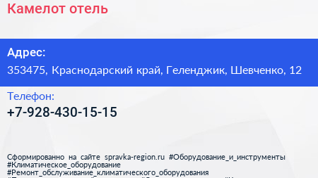 Камелот, отель по адресу 353475, Краснодарский край, Геленджик, Шевченко, 12 в дальнейшем Организация, размещена в следующих категориях: