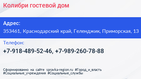 Колибри, гостевой дом по адресу 353461, Краснодарский край, Геленджик, Приморская, 13 в дальнейшем Организация, размещена в следующих категориях: